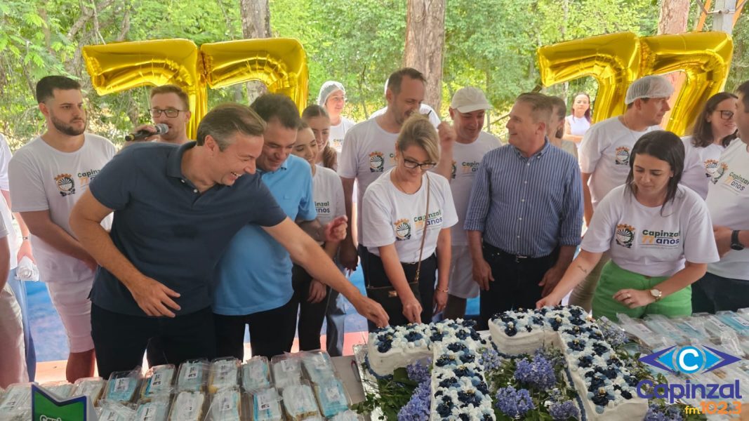Um grande público participou, nesta segunda-feira (16), da programação alusiva aos 77 anos de emancipação político-administrativa de Capinzal, realizada na Área de Lazer Dr. Arnaldo Favorito e no Centro Multiuso Arlindo Bertola. A data oficial do aniversário do município é na terça-feira (17), porém as comemorações foram antecipadas, assim como o feriado municipal.