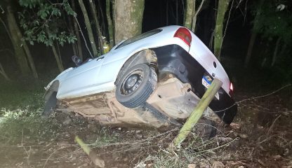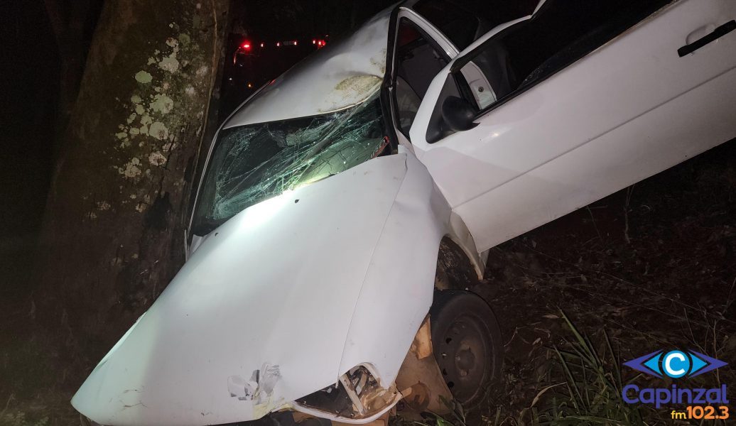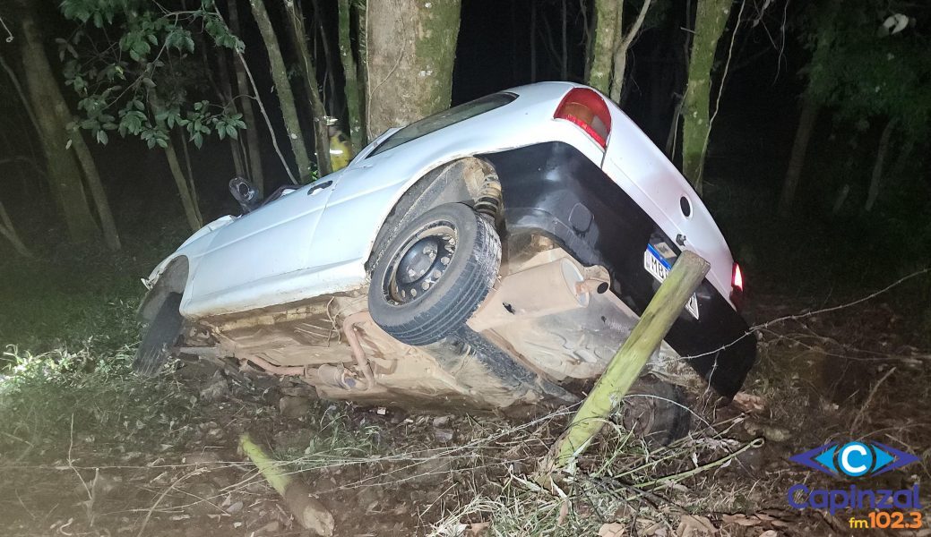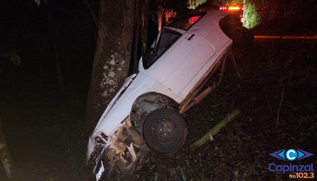 Homem fica ferido após carro sair da pista no acesso ao Distrito de Alto Alegre, em Capinzal