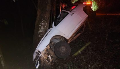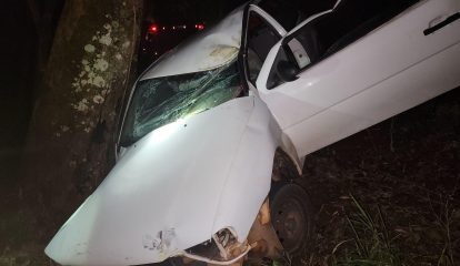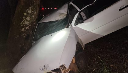 Após sair da pista, o automóvel ainda derrubou uma cerca e colidiu contra uma árvore às margens da estrada, sofrendo grandes danos materiais.