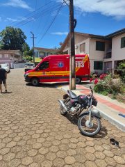 Um acidente de trânsito envolvendo uma motocicleta e um automóvel foi atendido pelo Corpo de Bombeiros Militar na tarde de sábado, 13 de dezembro, no perímetro urbano do município de Ipira. A ocorrência foi registrada por volta das 13h35, na Rua Governador Colombo Machado Salles.