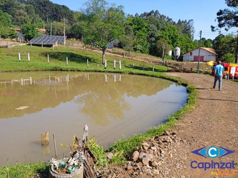 Um idoso foi resgatado após o carro que conduzia sair da pista e cair em um açude na tarde desta quarta-feira (15), por volta das 15h20, na comunidade de Linha Capelinha, interior de Ipira.