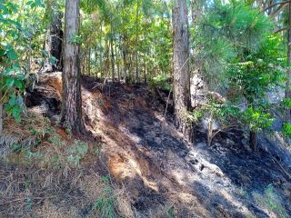 Incêndio atinge área de reflorestamento de pinus às margens da BR-282, em Catanduvas