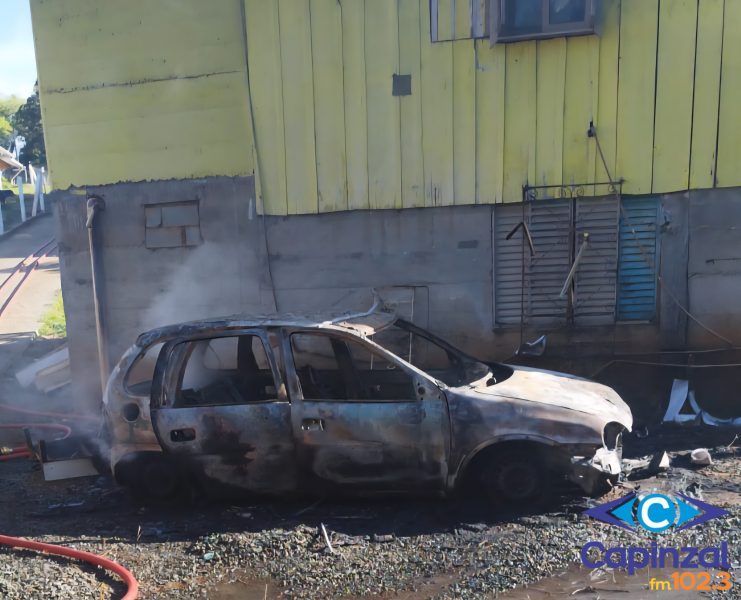 Incêndio destrói veículo estacionado ao lado de residência em Itá
