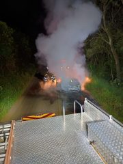 No local, as guarnições confirmaram que um Volkswagen Golf, com placas de Fraiburgo, estava tomado pelas chamas, já em fase de desenvolvimento completo, atingindo toda a estrutura do automóvel. O carro era conduzido por um homem de 24 anos, que não sofreu ferimentos.