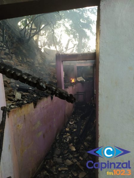 Quando os bombeiros chegaram, encontraram o imóvel completamente tomado pelas chamas. O fogo já havia provocado o colapso do telhado e de parte das paredes, impossibilitando qualquer tentativa de salvar a estrutura. Após o combate direto, as equipes realizaram o rescaldo, utilizando aproximadamente 3 mil litros de água para eliminar focos remanescentes e garantir a segurança da área.
