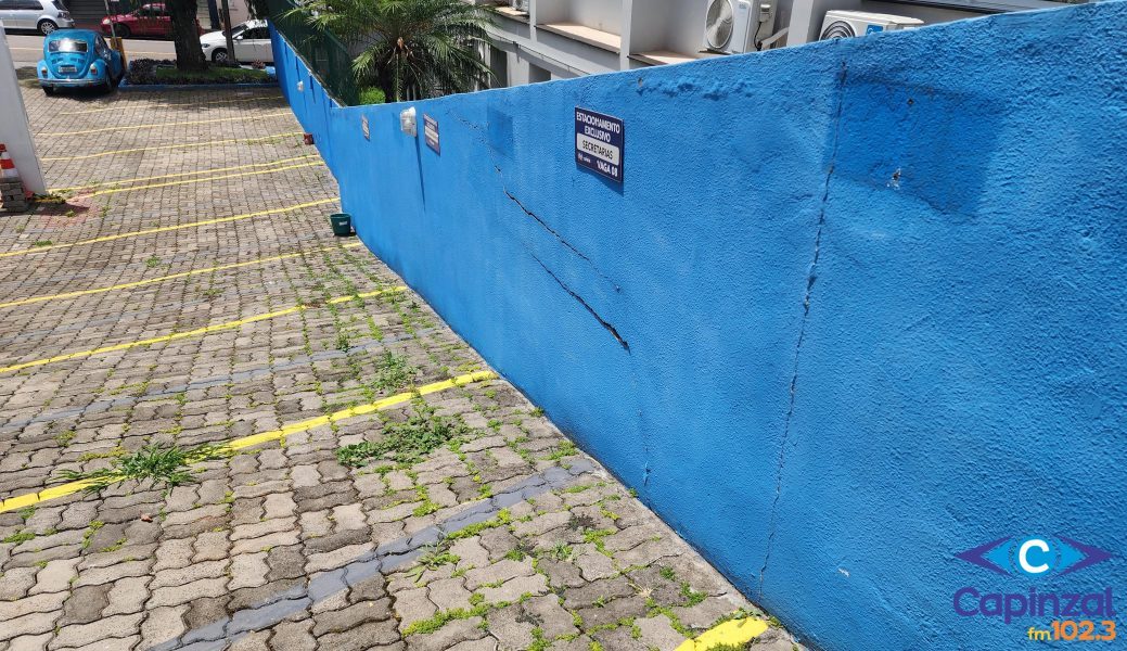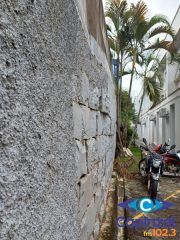A medida foi adotada após a constatação de rachaduras no muro existente, que apresenta risco de desabamento. Diante da situação, a estrutura atual será removida e substituída por um novo muro de contenção, mais seguro e adequado às condições do terreno.