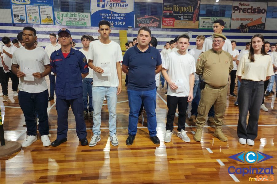 Na noite desta sexta-feira (14), 119 jovens de Capinzal e Ouro que completaram 18 anos em 2025 participaram da cerimônia de entrega do Certificado de Dispensa de Incorporação (CDI) do Serviço Militar. O evento foi realizado no Ginásio Municipal Prefeito Dileto Bertaiolli, em Capinzal.