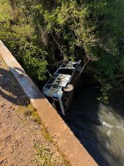 Na manhã desta terça-feira (14), por volta das 8h, o Corpo de Bombeiros Militar de Santa Cecília foi acionado para atender a um acidente de trânsito na Localidade de Goulart. O fato envolveu uma Kombi escolar do município que saiu da pista em uma ponte, caindo no Rio Correntes.
