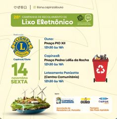 O Lions Clube Capinzal/Ouro realiza, nesta sexta-feira, dia 14 de novembro, a 28ª edição da Campanha de Recolhimento de Lixo Eletrônico. A ação tem o objetivo de incentivar o descarte correto de materiais eletrônicos e contribuir para a preservação do meio ambiente.