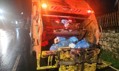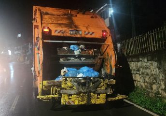 Motociclista e socorrido pelos Bombeiros após colidir na traseira de caminhão de coleta de lixo em Capinzal