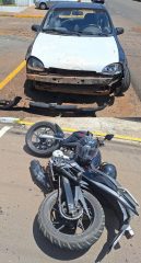 No local, a guarnição da Rádio Patrulha da 3ª Companhia de Polícia Militar constatou uma colisão entre um automóvel e uma motocicleta. Em decorrência do impacto, o condutor da motocicleta, de 52 anos, e o passageiro, de 18 anos, sofreram ferimentos e foram socorridos pelo Corpo de Bombeiros, sendo encaminhados ao hospital para atendimento médico.