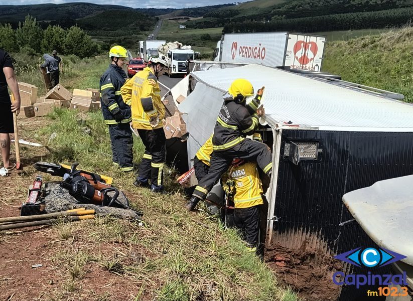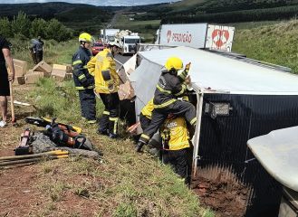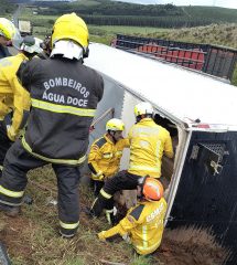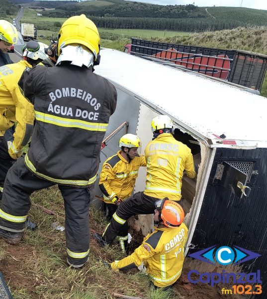 Um motorista morreu após o caminhão que conduzia sair da pista e tombar na BR-153, na altura do km 09, em Água Doce. O acidente foi registrado na tarde desta quarta-feira (10), por volta das 13h27, e mobilizou várias equipes do Corpo de Bombeiros Militar.
