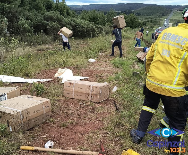 Motorista morre após caminhão tombar em Água Doce; parte da carga de conjuntos de ar-condicionado foi saqueada