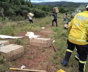 Antes da chegada da PRF, no entanto, parte da carga foi saqueada por populares, segundo relataram os bombeiros.