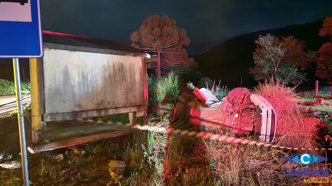 Uma mulher morreu em um acidente de trânsito registrado na noite deste sábado (21), na SC-467, na comunidade de Linha França, no interior de Jaborá. Segundo o Corpo de Bombeiros, o carro em que ela estava colidiu contra um ponto de ônibus e ficou lateralizado às margens da rodovia.