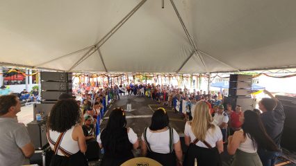 A festa contou com uma ampla estrutura, incluindo tendas, palco e decoração temática, reunindo alegria, integração e valorização da melhor idade.