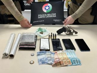 PM prende três pessoas por tráfico de drogas, posse irregular de arma e cumprimento de mandado em Joaçaba