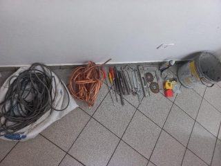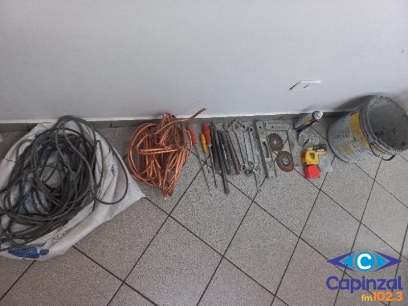 Durante a abordagem, os policiais localizaram um cofre digital, documentos e folhas de cheque pertencentes a uma clínica, além de ferramentas e outros objetos furtados. Todo o material foi apreendido.
