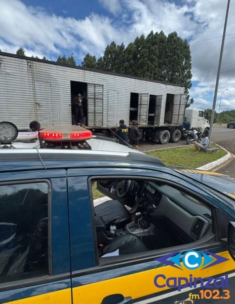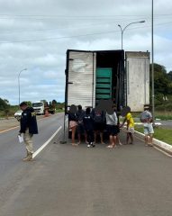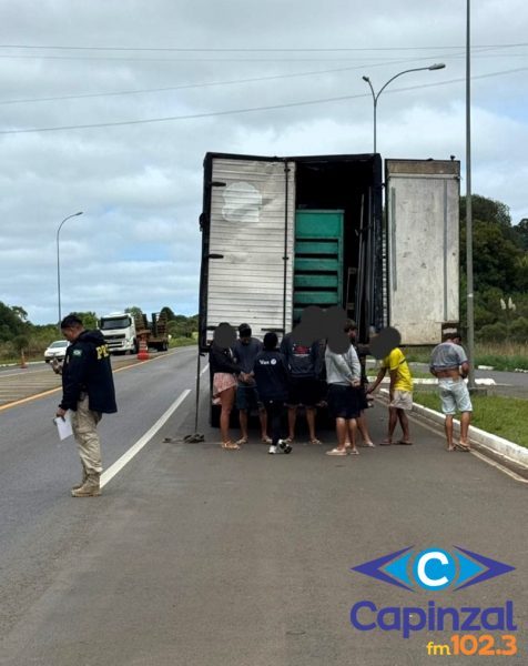Na manhã desta segunda-feira (23), durante fiscalização na BR-282 em Campos Novos, policiais rodoviários federais flagraram seis pessoas sendo transportadas irregularmente dentro do compartimento de carga de um caminhão.