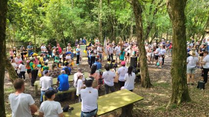 Durante o trajeto, os participantes vivenciaram momentos de oração, reflexão e cânticos, além de realizarem o plantio simbólico de sementes de girassol, gesto que representou fé, esperança e crescimento espiritual.