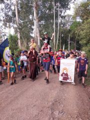 Logo em seguida, os fiéis iniciaram o percurso de sete quilômetros até o Distrito de Santa Lúcia. A atividade foi organizada e orientada pelo Grupo de Devotos de Frei Crispim, pelo Grupo Escoteiro Trem do Vale, com o apoio do Movimento do Acampamento no Limite com Cristo.