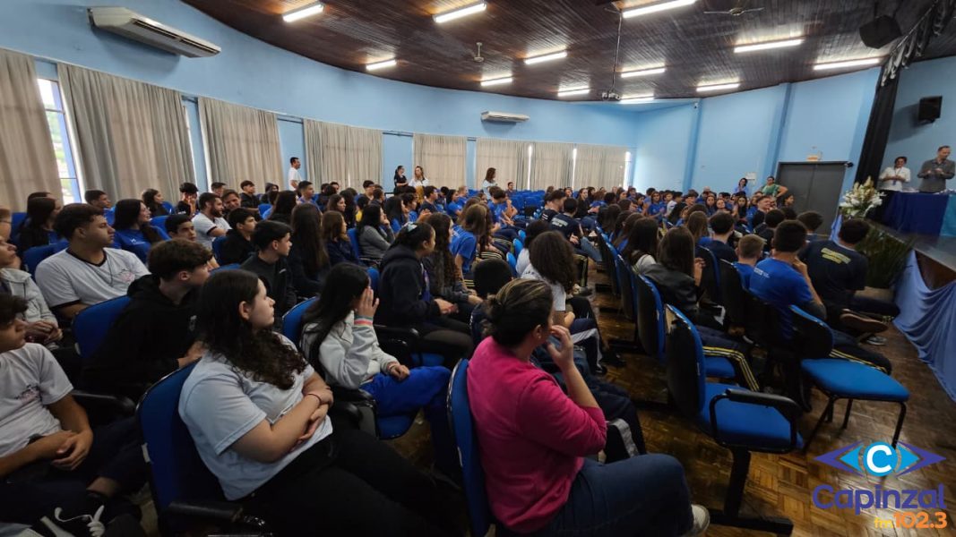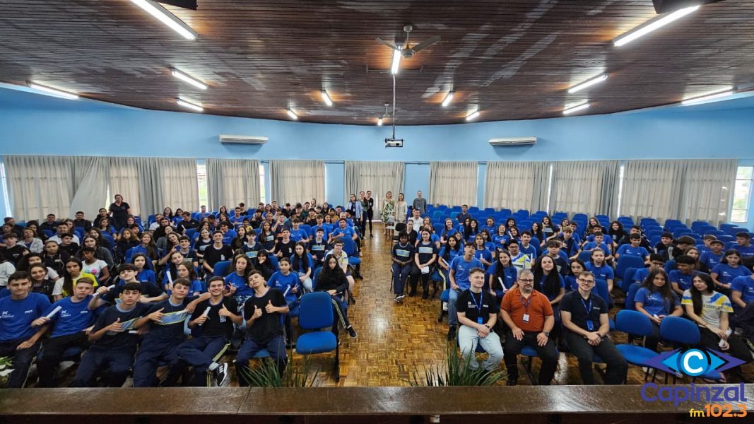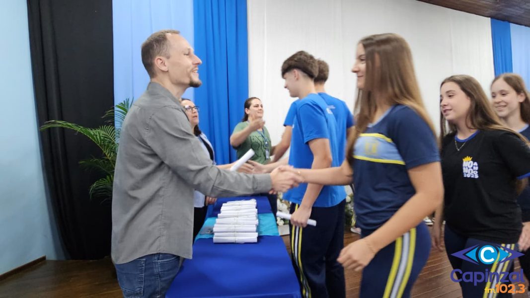 A manhã de quarta-feira (10) foi de celebração e incentivo ao futuro profissional dos jovens de Capinzal. No auditório da Escola Municipal Viver e Conhecer, 250 estudantes dos oitavos e nonos anos da rede municipal participaram da cerimônia de formatura dos cursos de iniciação profissional oferecidos em parceria com o SESI/SENAI.