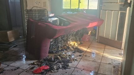 Princípio de incêndio mobiliza bombeiros após criança atear fogo em sofá com isqueiro em Capinzal