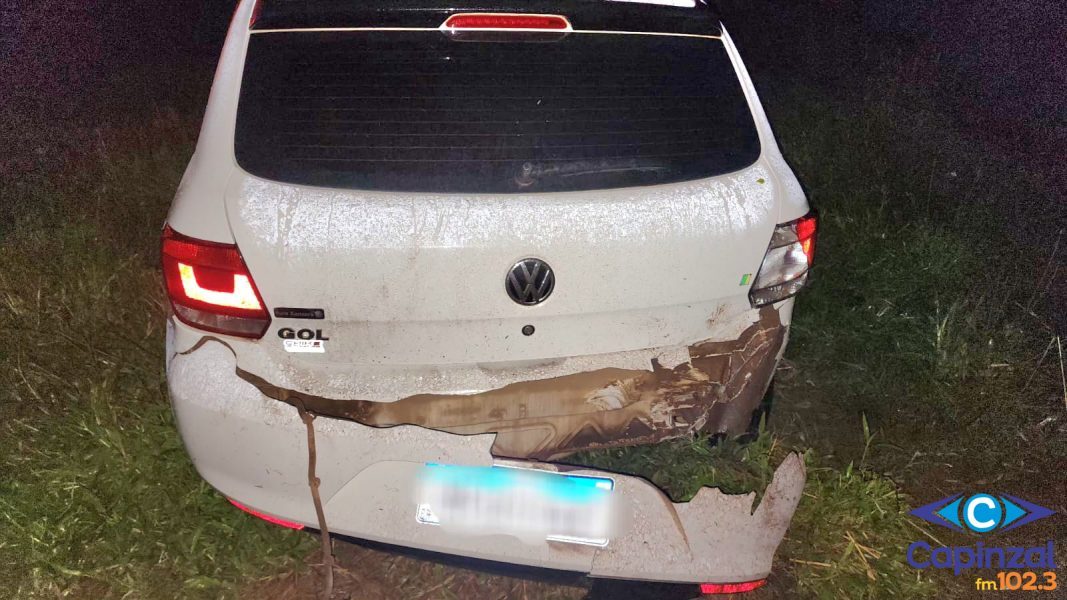 O veículo teve danos materiais, principalmente no parachoque dianteiro, na lateral no lado do carona e na parte traseira.