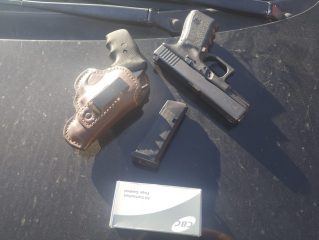 Durante a abordagem, os policiais encontraram uma pistola Glock calibre 380 com 10 munições, um revólver calibre 38 sem munição, além de 15 projéteis intactos calibre 380 e duas cápsulas deflagradas.