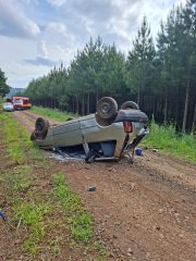 No local, foi confirmado o capotamento de um Fiat Uno, conduzido por um homem de 31 anos, que apresentava ferimentos na região da cabeça e do ombro. No veículo também estavam uma mulher de 25 anos, que relatava dores na região lombar, e uma criança de 9 anos, que se queixava de dores no braço esquerdo e na lombar.