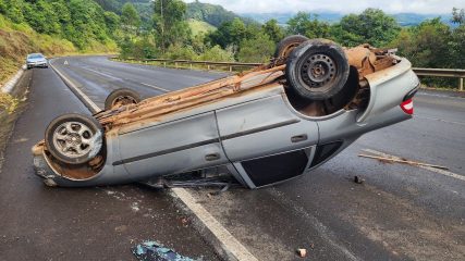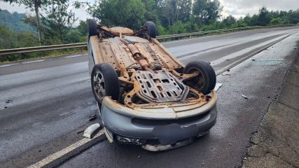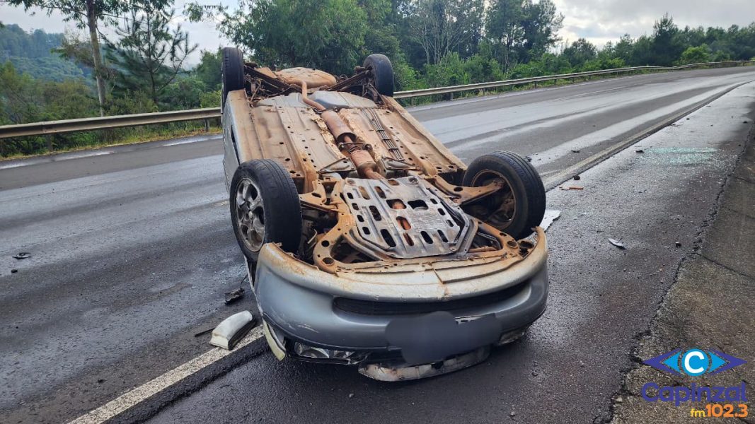 VÍDEO: Veículo sai da pista e capota no Contorno Viário de Capinzal